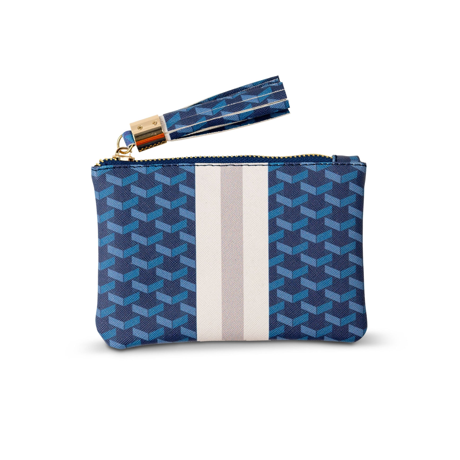 Your game day MVP just got an upgrade. With a bold geometric pattern and eye-catching stripes, this coin clutch is the perfect way to add a polished pop of pride to your clear stadium bag. Finished with a luxe gold zipper and coordinating tassel, it keeps your essentials organized while repping your colors. Game day just got a little more chic.