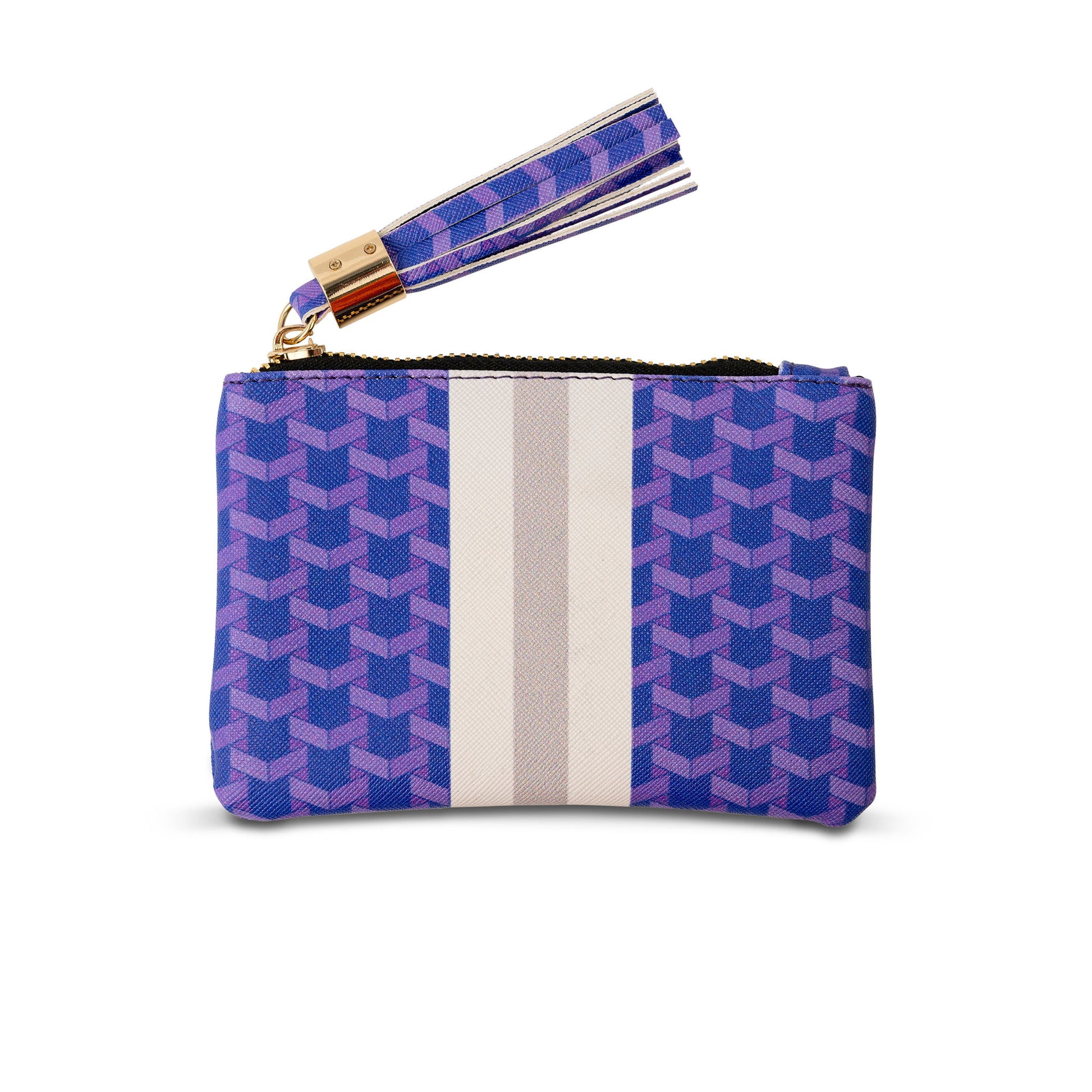 Your game day MVP just got an upgrade. With a bold geometric pattern and eye-catching stripes, this coin clutch is the perfect way to add a polished pop of pride to your clear stadium bag. Finished with a luxe gold zipper and coordinating tassel, it keeps your essentials organized while repping your colors. Game day just got a little more chic.