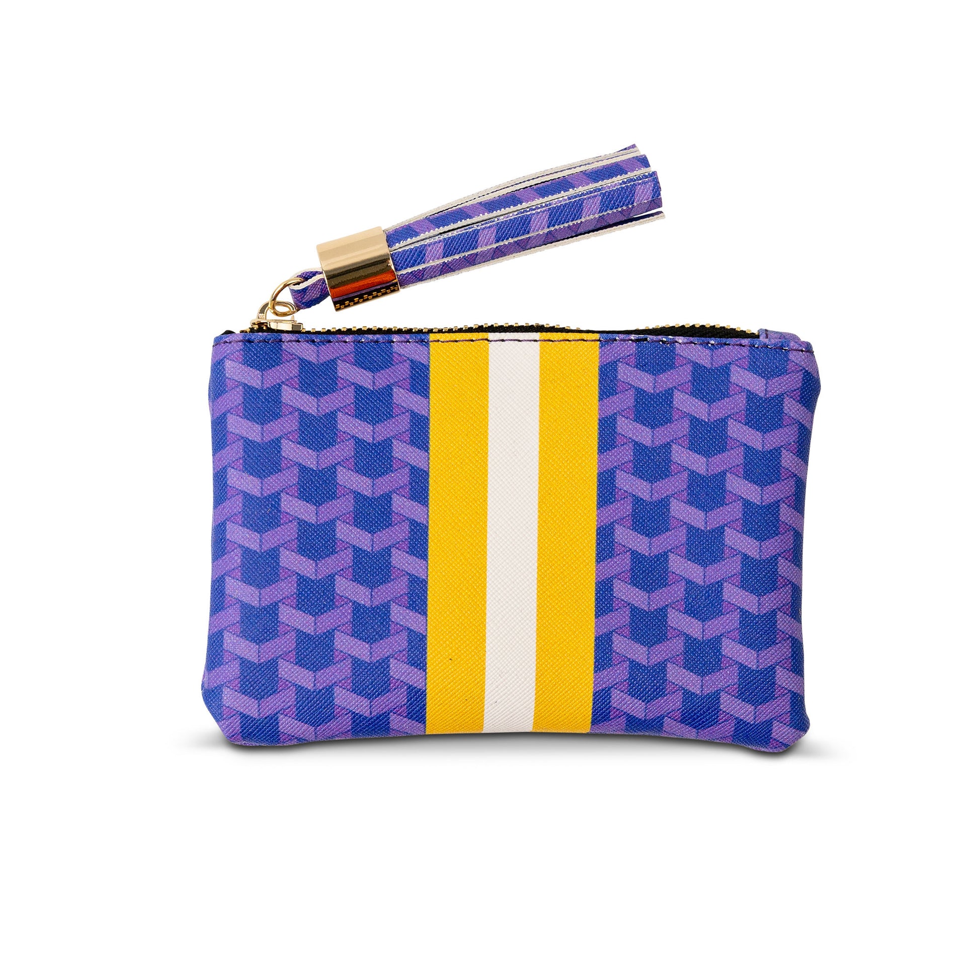 Your game day MVP just got an upgrade. With a bold geometric pattern and eye-catching stripes, this coin clutch is the perfect way to add a polished pop of pride to your clear stadium bag. Finished with a luxe gold zipper and coordinating tassel, it keeps your essentials organized while repping your colors. Game day just got a little more chic.